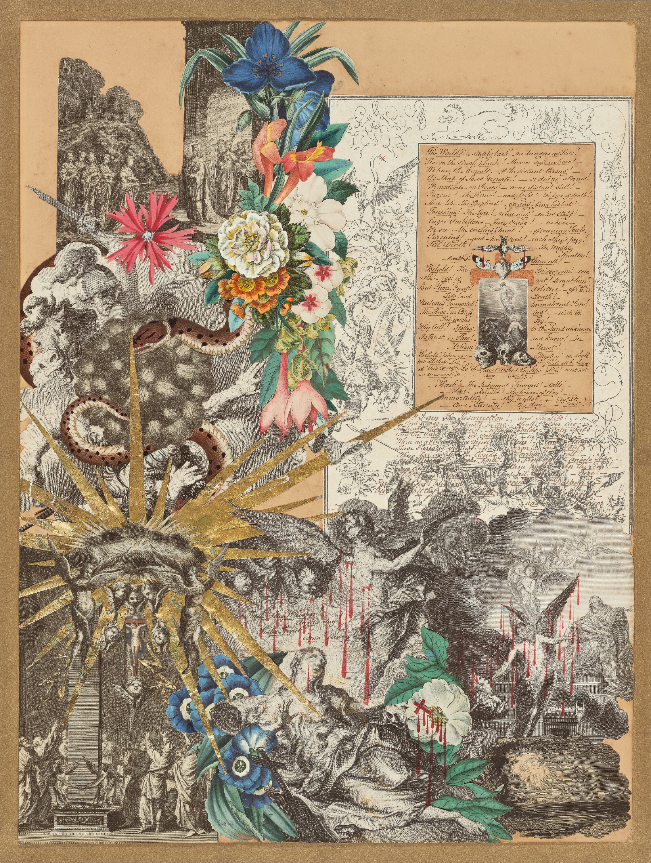 Art: John Bingley Garland, “Single-page collage featuring Mary Magdalene beneath a violin-playing cherub”, (1850–60)